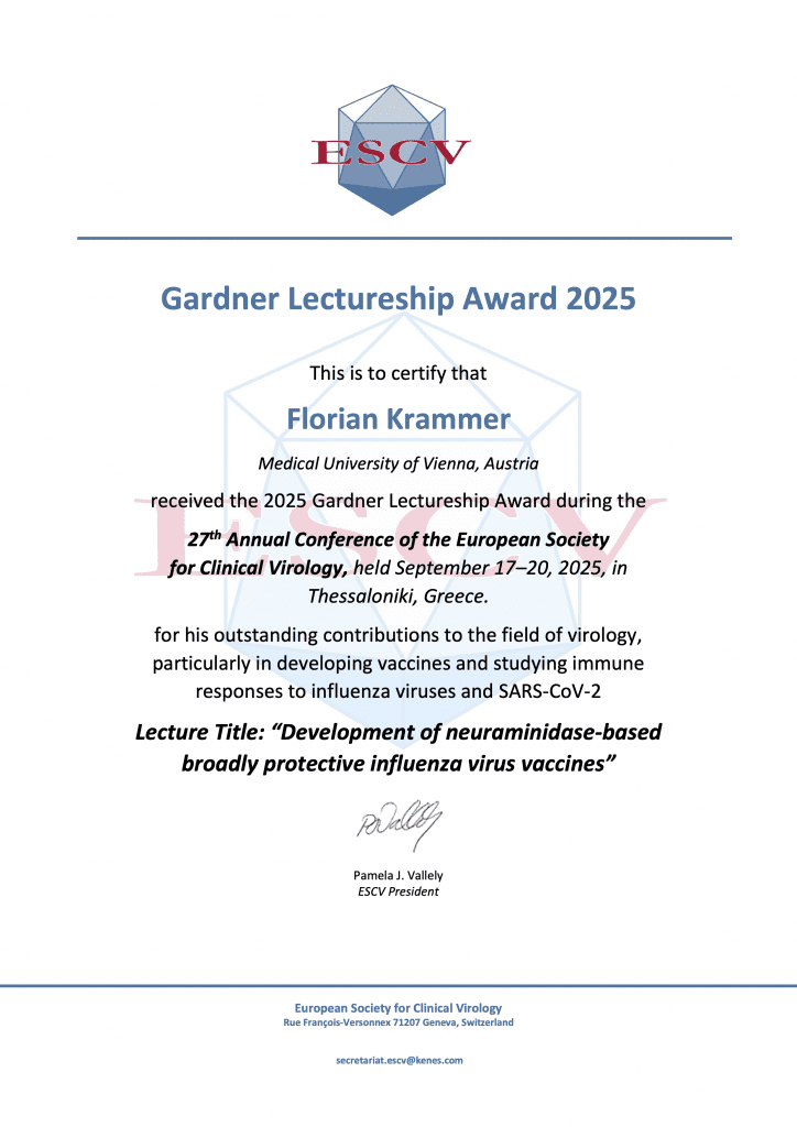 Die Gardner Lectureship zeichnet international anerkannte Wissenschaftler:innen aus, die eingeladen werden, beim ESCV Annual Meeting einen Vortrag zu halten. Die Lecture behandelt Themen von aktueller oder zukünftiger Bedeutung für die klinische Virologie, insbesondere mit diagnostischem oder praktischem Nutzen.