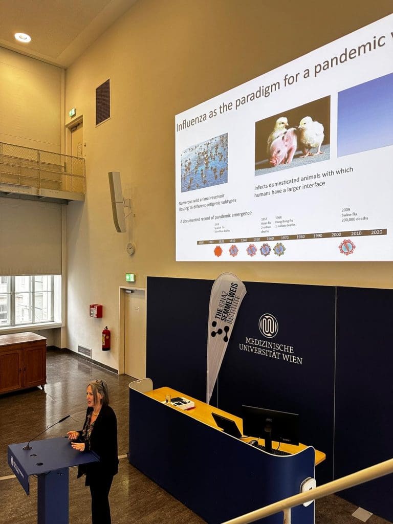 On 21 January, we welcomed Wendy Barclay as a speaker of the Semmelweis Seminar Series in the Jugendstilhörsaal. Her talk focused on “Understanding How Respiratory Viruses Cause Pandemics,” providing valuable insights into the mechanisms that drive viral transmission and pandemic emergence.